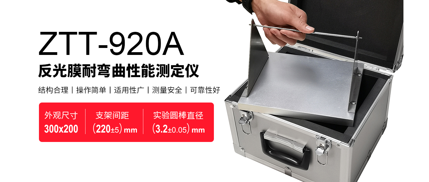 ZTT-920A反光膜耐彎曲性能測定器主要由鋁質合金底座、不銹鋼支架、不銹鋼試驗圓棒等部分組成。