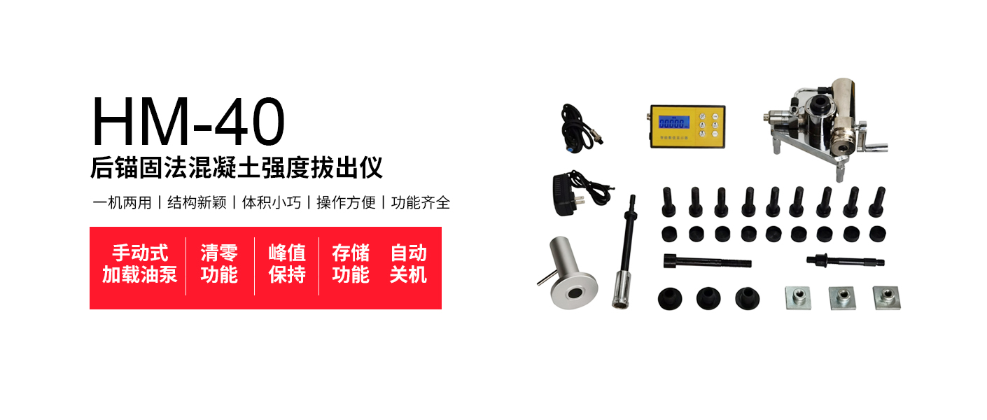 HM-40型后錨固法混凝土強度檢測儀用于檢驗建筑工程中混凝土強度及飾面磚、馬賽克與墻體或地面的粘結強度。