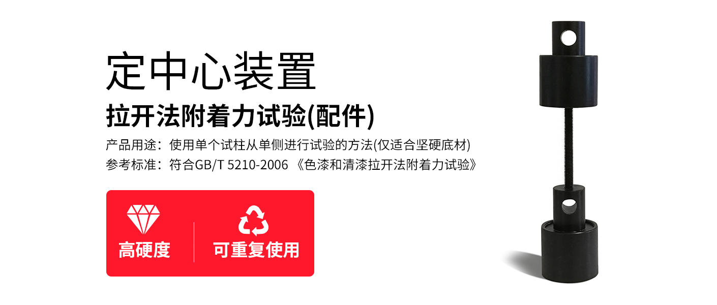 定中心裝置,使用單個試柱從單側進行試驗的方法僅適合堅硬底材。符合GBT5210-2006《色漆和清漆拉開法附著力試驗》的標準要潔度。